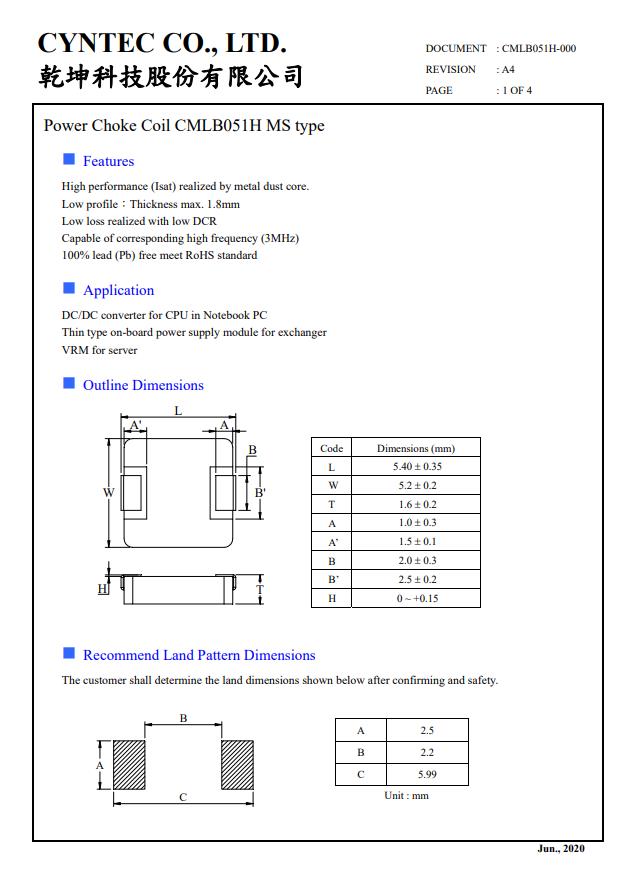 0.6毫米、通过低DCR实现低损耗 、能够对应高频 、100%无铅(Pb)符合RoHS标准 。在服务上,Cyntec为定制化产品和包装提供强大而及时的设计和开发支持。